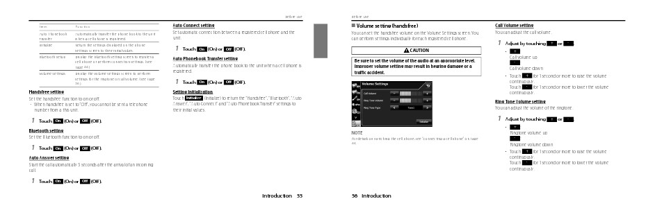 Answer”, “Auto Connect” and “Auto Phonebook Transfer” settings to