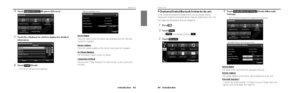 information related to Bluetooth devices that are registered on the unit.