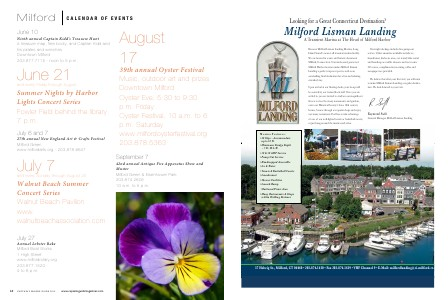 39th annual Oyster Festival Music, outdoor art and prizes Downtown Milford Oyster Eve, 5:30 to 9:30 p.m. Friday Oyster Festival, 10 a.m. to 6 p.m. Saturday www.milfordoysterfestival.org 203.878.5363