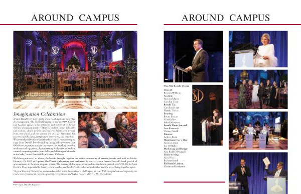 With Imagination as its theme , the benefit brought together our entire community of parents , faculty and staff on Friday , February 25 , 2022 , at Cipriani 42nd Street . Celebratory jazz performed by our very own Franco Finstad ’ s band greeted all upon entrance to the event as spirits soared . The evening of dining , dancing , and auction bidding raised over $ 700,000 for Saint David ’ s . More importantly , Saint David ’ s families and faculty / staff celebrated each other and the joy of being together again .