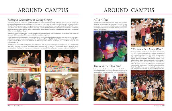 The beloved Fifth Grade musical tradition came roaring back with a spectacular production of Gilbert and Sullivan ’ s H . M . S . Pinafore performed for Fifth Grade parents , faculty and staff in our Otto-Bernstein Theatre in June . From the rousing opening number to the confetti-covered finale , and with song , dance , choreography , and stunning scenery throughout , this was a celebration of the arts at Saint David ’ s and of the joy of live theater performance . The production was directed by Saint David ’ s Choral Director Meg Myette . Music Chair Jeff Moore was the pianist . Set design was by Art Chair Jenna Boccella and the Grade Five Stagecraft Class .