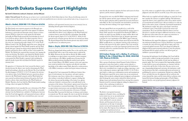 North Dakota Supreme Court Highlights