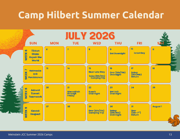 Camp Hilbert Summer Calendar