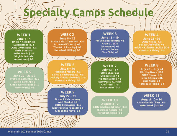 Hip Hop Dance | K-5 CORE Ninjas | K-5 In the Kitchen with Chef Yossi | 2-5 Horseback Riding | 3-5