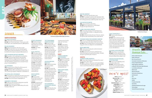 THE DINING ROOM AT THE VANDERBILT , NEWPORT VIBE : This former Vanderbilt hideaway gives guests a taste of high society . Enjoy an after-dinner cocktail on the Roof Deck . GET THIS : Classic New England dishes are served with a twist to keep guests on their toes . aubergeresorts . com / vanderbilt / dine
