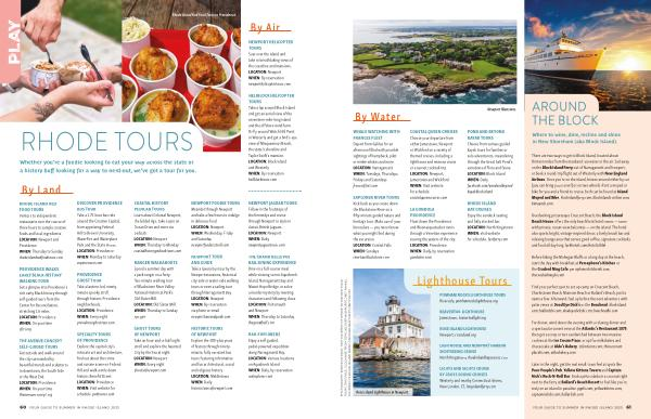 RHODE ISLAND RED FOOD TOURS Venture to independent restaurants over the course of three hours to sample creative foods and local ingredients. LOCATION: Newport and Providence WHEN: Thursday to Sunday rhodeislandredfoodtours. com