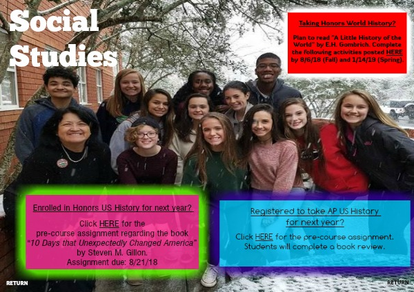 Plan to read "A Little History of the World" by E.H. Gombrich. Complete the following activities posted HERE by 8/6/18 (Fall) and 1/14/19 (Spring).