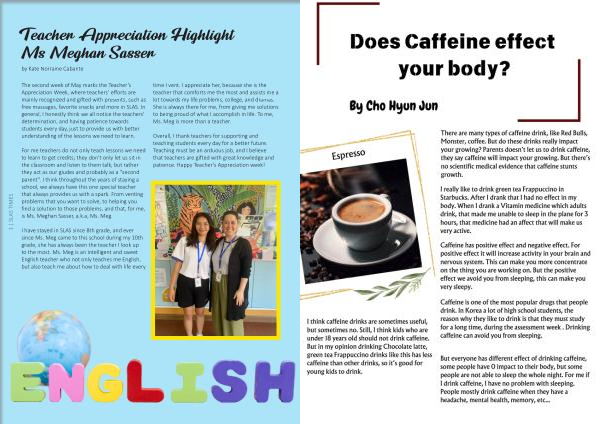 I have stayed in SLAS since 8th grade , and ever since Ms . Meg came to this school during my 10th grade , she has always been the teacher I look up to the most . Ms . Meg is an intelligent and sweet English teacher who not only teaches me English , but also teach me about how to deal with life every