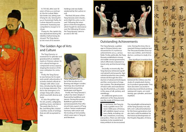 The remarkable achievements of the Tang Dynasty not only left a rich cultural benefaction for the future generations , but also laid a solid foundation for the historical development of the People ’ s Republic of China . mysteries to be revealed and many artifacts to be uncovered .