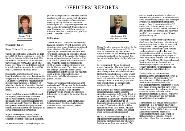 You may have also noticed the increased emails from NALA talking about the upcoming conference in St. Louis. If not, let me give you a “head’s up”! The 2018 NALA Conference & Expo will be held this year in St. Louis, Missouri, from July 11-13. Registration is open on-line and everyone is welcome! You don’t need to be a NALA member or even a CP to attend. And you think our seminars are good? You should check out the national conference!