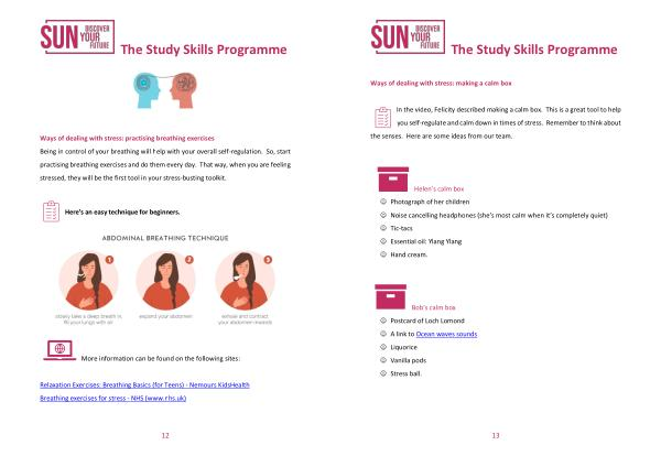 Ways of dealing with stress : practising breathing exercises Being in control of your breathing will help with your overall self-regulation . So , start practising breathing exercises and do them every day . That way , when you are feeling stressed , they will be the first tool in your stress-busting toolkit .