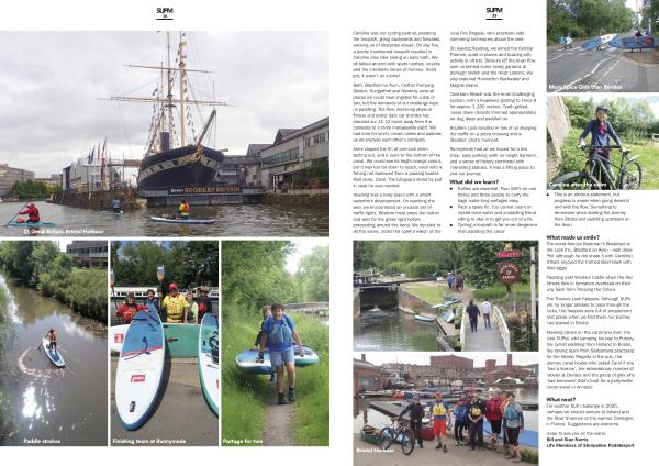 What did we learn ? l Trollies are essential . Four SUPs on one trolley and three people to carry the bags make long portages easy . l Pack a spare fin . You cannot count on crystal clear water and a paddling friend willing to dive in to get you out of a fix . l Cycling a towpath is far more dangerous than paddling the canal l