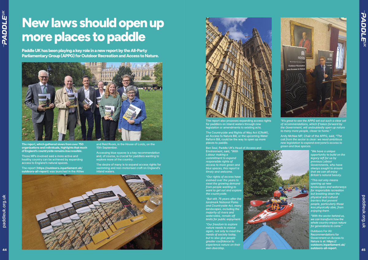 Paddle UK has been playing a key role in a new report by the All-Party Parliamentary Group( APPG) for Outdoor Recreation and Access to Nature.