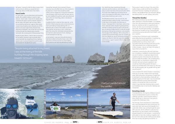 The following morning , I was up at 05:00 , and despite the winds coming in early , I tried my best to get closer to the needles , but there was no chance . I managed 3km in two hours , came to the shore , and took shelter . Despite my disheartening attempt , it turned out that my spot on the beach gave me plenty of opportunities to talk with people passing by , enticing more donations and spreading the message of the challenge . While sitting there , I realised how environmentally aware the residents of the Isle of Wight are , proud community members trying to do their bit . With that awareness and the wind clearing , I gave it my best effort to edge closer to the needles .