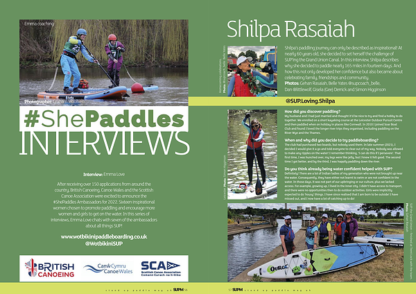 After receiving over 150 applications from around the country , British Canoeing , Canoe Wales and the Scottish Canoe Association were excited to announce the # ShePaddles Ambassadors for 2022 . Sixteen inspirational women chosen to promote paddling and encourage more women and girls to get on the water . In this series of interviews , Emma Love chats with seven of the ambassadors about all things SUP !