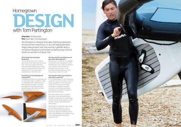 Tom Partington is a designer and maker of all things watersports . He ’ s been known to knock out a 14 ’ race SUP , high-performance dinghy sailing products and , more recently , hydrofoils . Being a homegrown designer in a niche often occupied by larger , overseas brands , we were keen to find out more .
