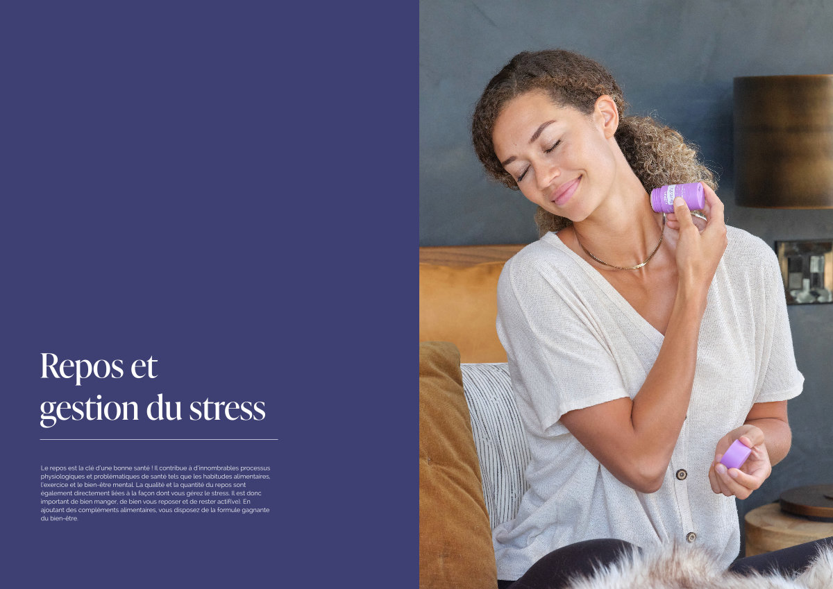 Le repos est la clé d’ une bonne santé! Il contribue à d’ innombrables processus physiologiques et problématiques de santé tels que les habitudes alimentaires, l’ exercice et le bien-être mental. La qualité et la quantité du repos sont également directement liées à la façon dont vous gérez le stress. Il est donc important de bien manger, de bien vous reposer et de rester actif( ve). En ajoutant des compléments alimentaires, vous disposez de la formule gagnante du bien-être.