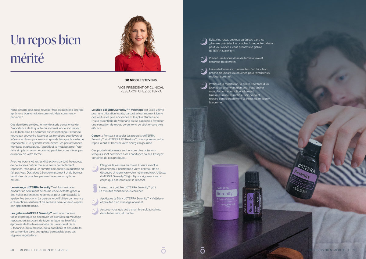 Évitez les repas copieux ou épicés dans les 3 heures précédant le coucher. Une petite collation peut vous aider si vous prenez une gélule dōTERRA Serenity™.