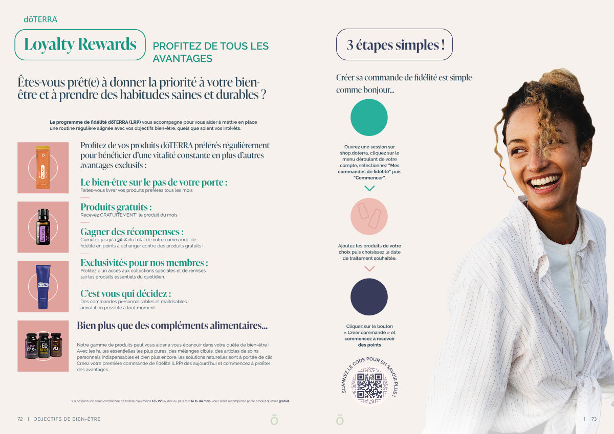 Le programme de fidélité dōTERRA( LRP) vous accompagne pour vous aider à mettre en place une routine régulière alignée avec vos objectifs bien-être, quels que soient vos intérêts.
