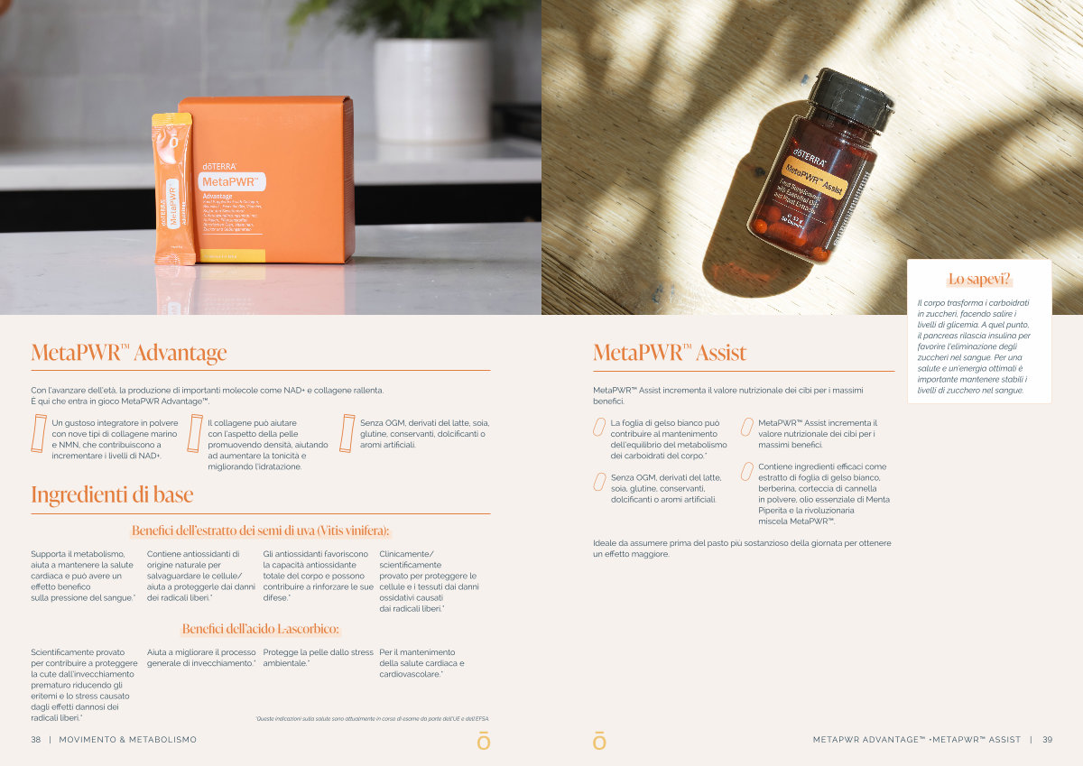 Con l’ avanzare dell’ età, la produzione di importanti molecole come NAD + e collagene rallenta. È qui che entra in gioco MetaPWR Advantage™.