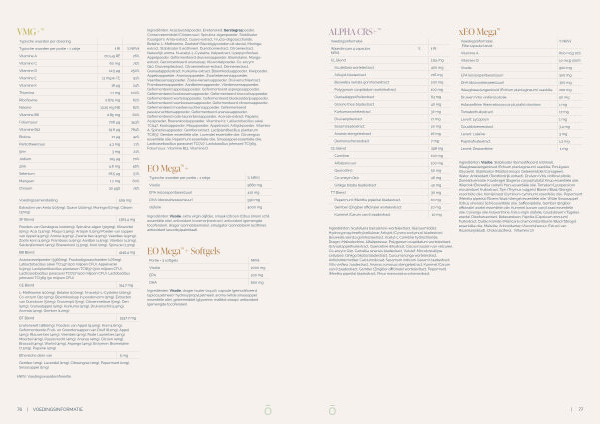 Geen GGO ' s, zuivel, soja, gluten, conserveringsmiddelen, kunstmatige zoetstoffen of smaakstoffen.