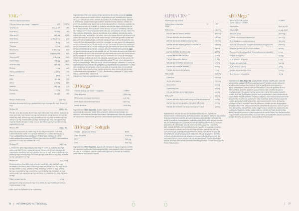Sem OGM, laticínios, soja, glúten, conservantes, aromas ou adoçantes artificiais.