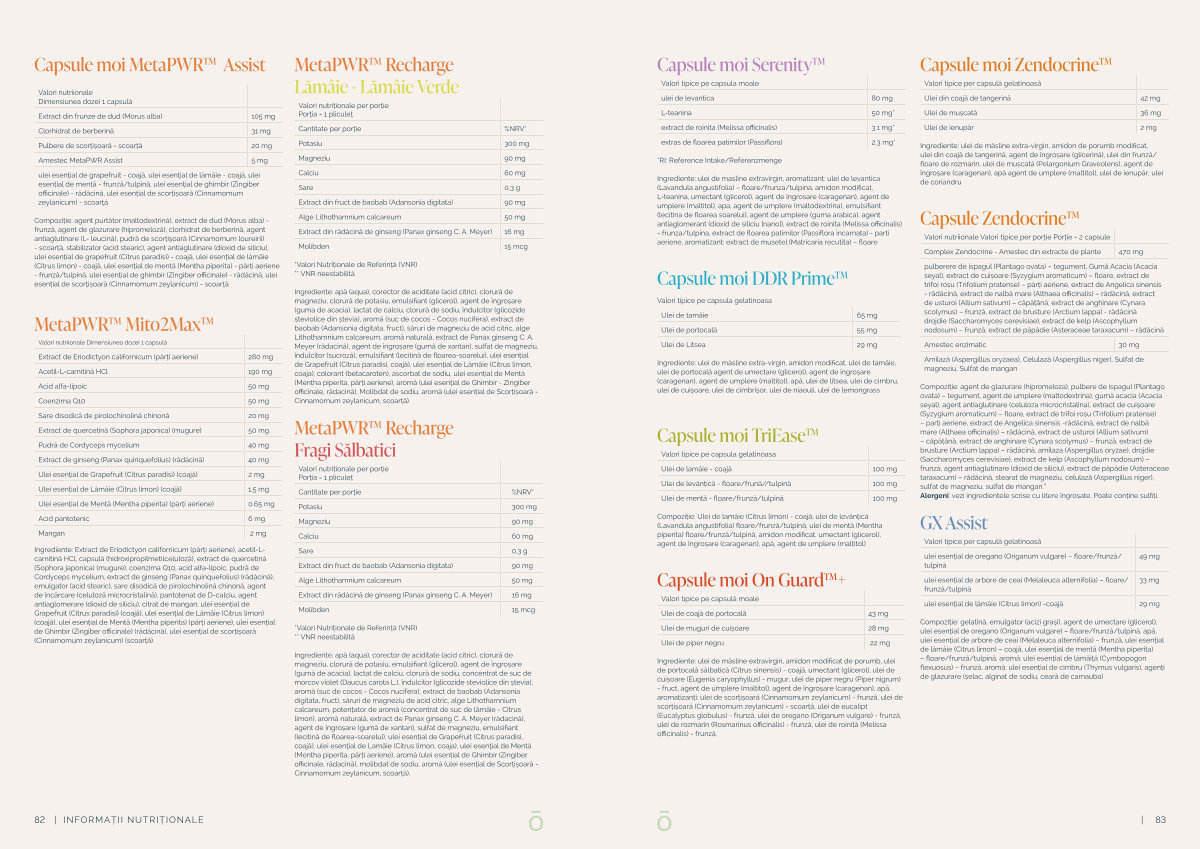 Valori tipice pe capsula gelatinoasa Ulei de lamâie- coajă Ulei de levănțică- floare / frună // tulpină Ulei de mentă- floare / frunză / tulpină