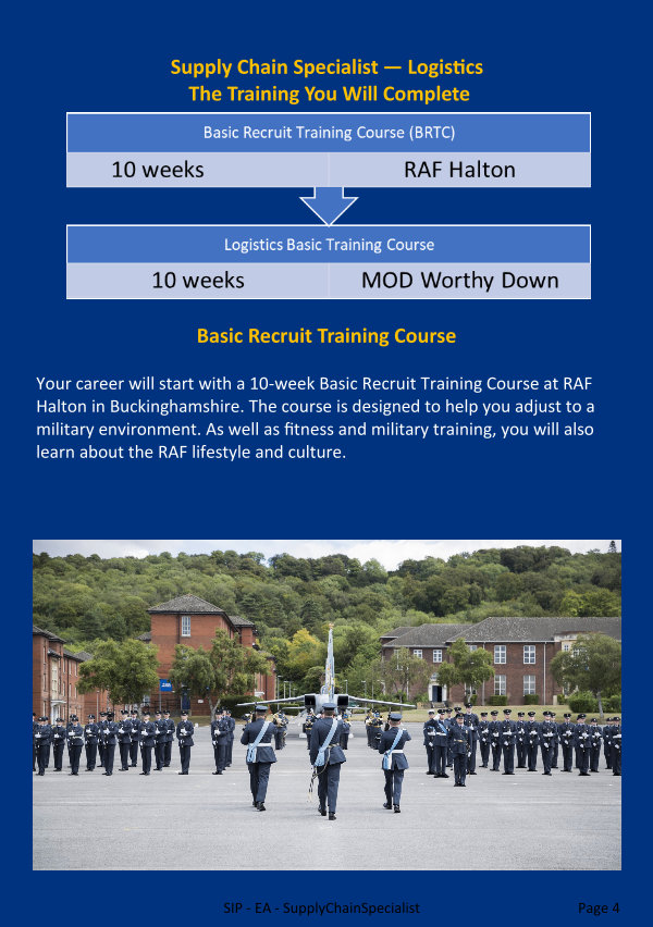 Your career will start with a 10-week Basic Recruit Training Course at RAF Halton in Buckinghamshire. The course is designed to help you adjust to a military environment. As well as fitness and military training, you will also learn about the RAF lifestyle and culture.