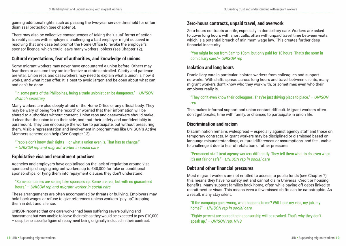 There may also be collective consequences of taking the‘ usual’ forms of action to rectify issues with employers: challenging a bad employer might succeed in resolving that one case but prompt the Home Office to revoke the employer’ s sponsor licence, which could leave many workers jobless( see Chapter 12).