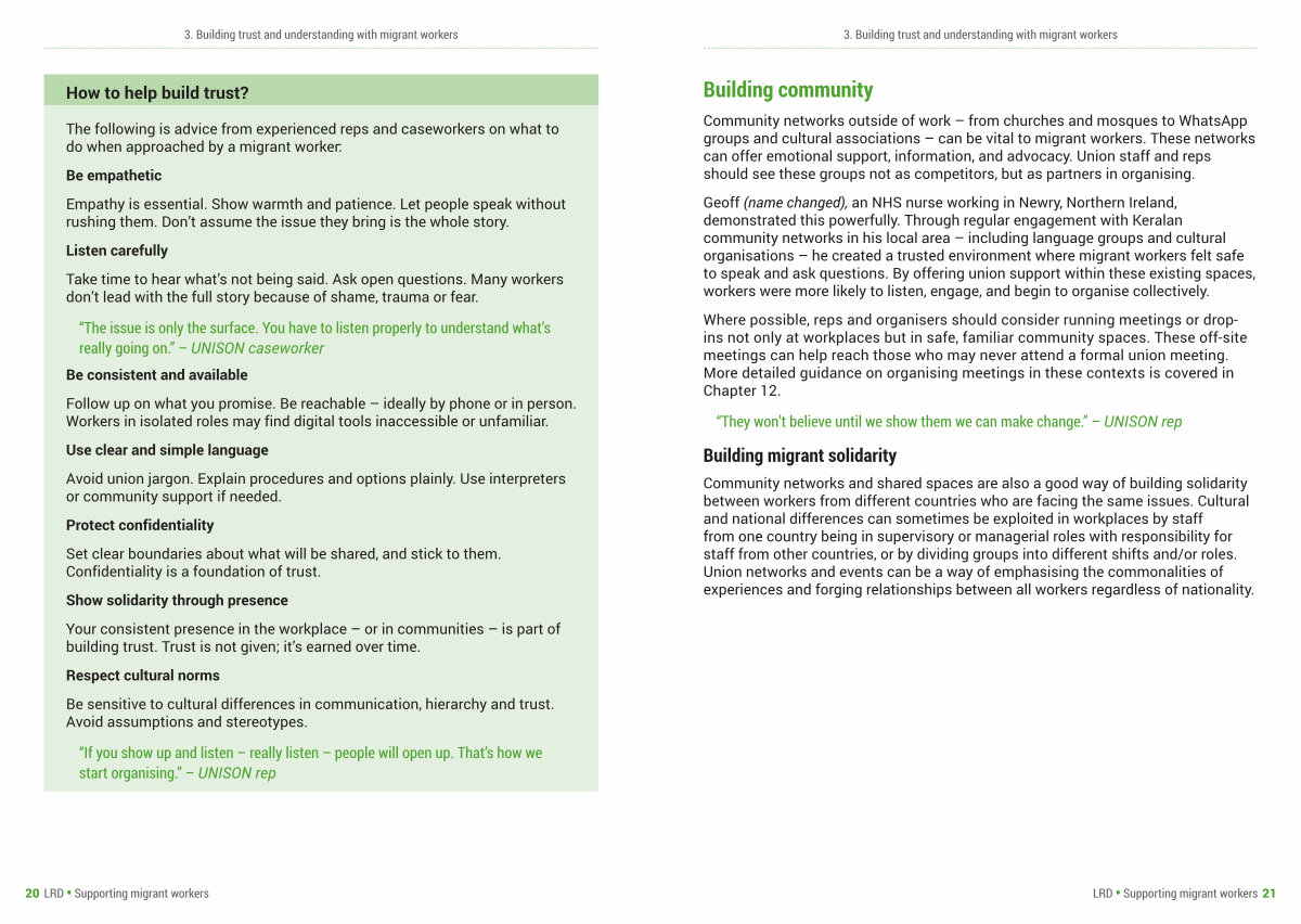 The following is advice from experienced reps and caseworkers on what to do when approached by a migrant worker: