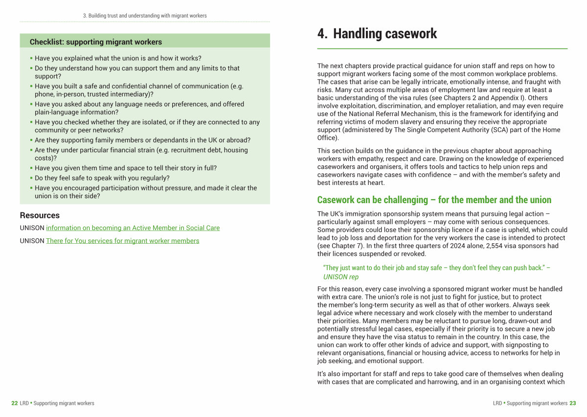 UNISON information on becoming an Active Member in Social Care UNISON There for You services for migrant worker members
