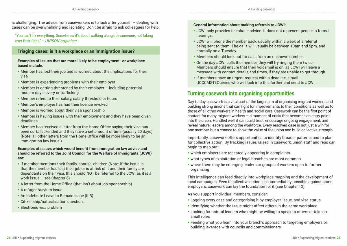 is challenging. The advice from caseworkers is to look after yourself – dealing with cases can be overwhelming and isolating. Don’ t be afraid to ask colleagues for help.