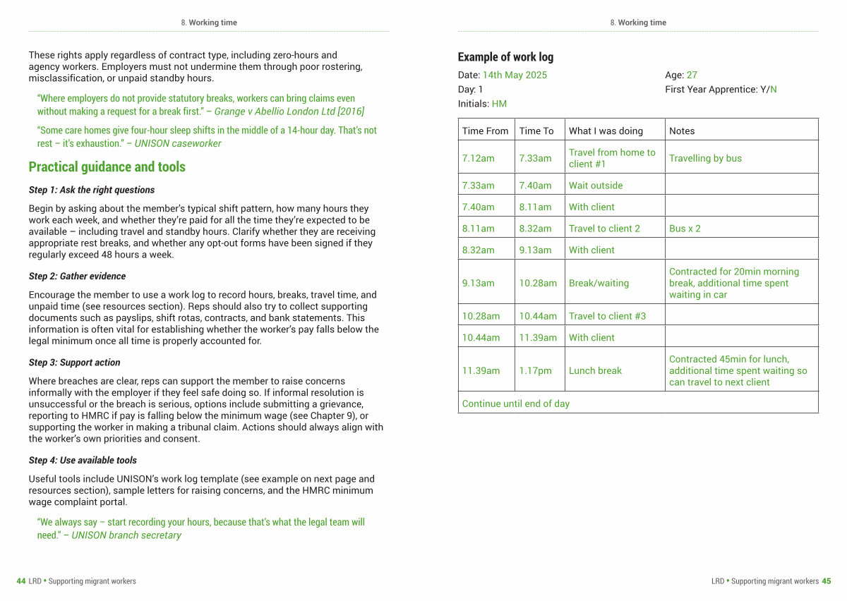 Contracted 45min for lunch, additional time spent waiting so can travel to next client