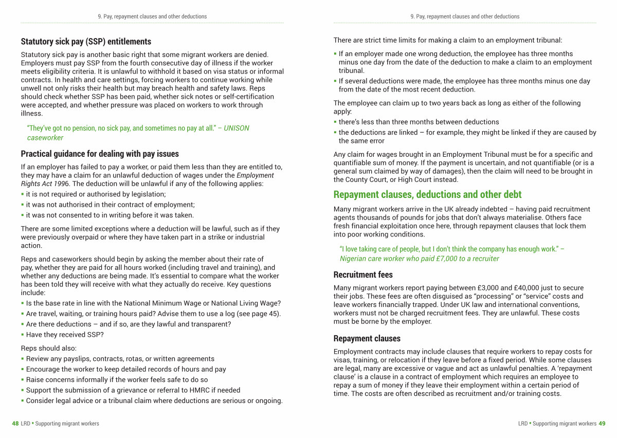 Many migrant workers arrive in the UK already indebted – having paid recruitment agents thousands of pounds for jobs that don’ t always materialise. Others face fresh financial exploitation once here, through repayment clauses that lock them into poor working conditions.