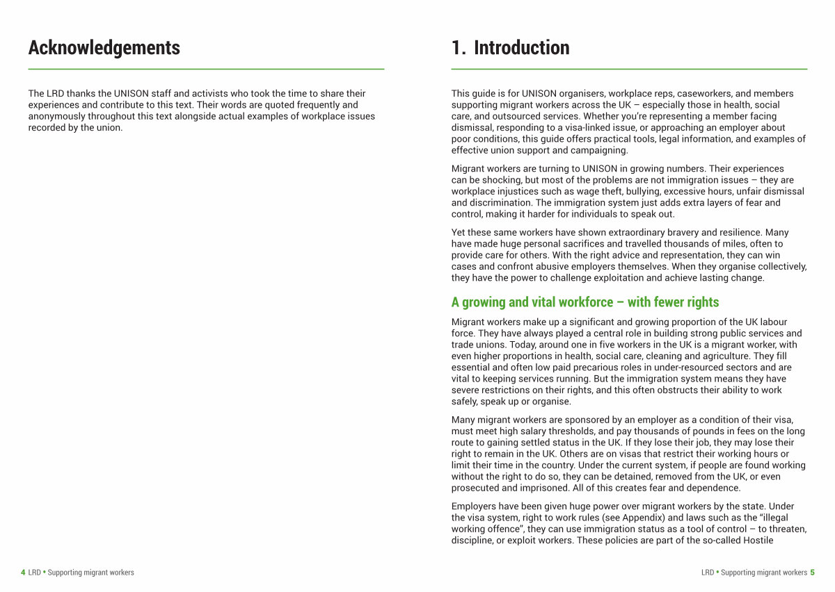 This guide is for UNISON organisers, workplace reps, caseworkers, and members supporting migrant workers across the UK – especially those in health, social care, and outsourced services. Whether you’ re representing a member facing dismissal, responding to a visa-linked issue, or approaching an employer about poor conditions, this guide offers practical tools, legal information, and examples of effective union support and campaigning.