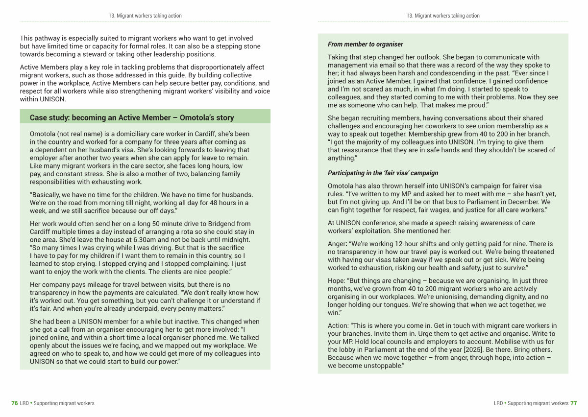 Active Members play a key role in tackling problems that disproportionately affect migrant workers, such as those addressed in this guide. By building collective power in the workplace, Active Members can help secure better pay, conditions, and respect for all workers while also strengthening migrant workers’ visibility and voice within UNISON.