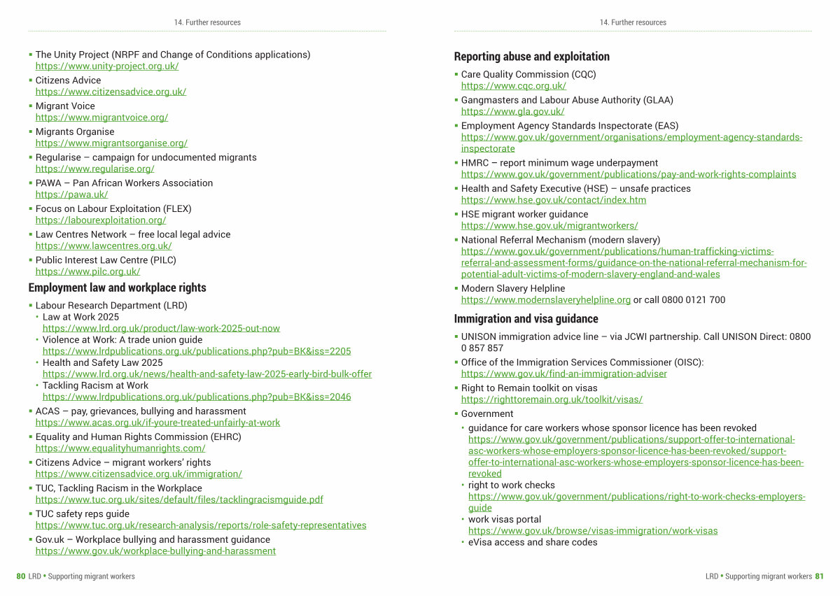 • UNISON immigration advice line – via JCWI partnership. Call UNISON Direct: 0800 0 857 857