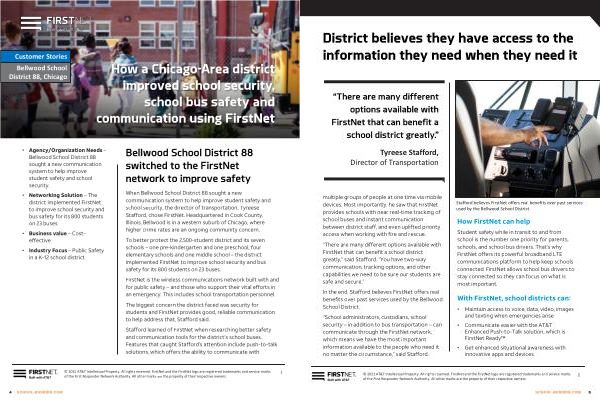 When Bellwood School District 88 sought a new communication system to help improve student safety and school security , the director of transportation , Tyreese Stafford , chose FirstNet . Headquartered in Cook County , Illinois , Bellwood is in a western suburb of Chicago , where higher crime rates are an ongoing community concern .