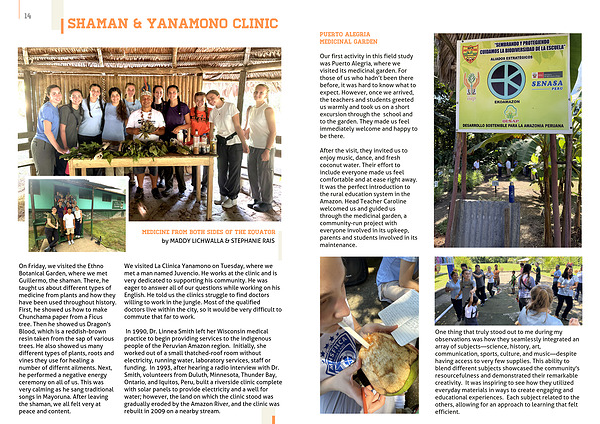 Our first activity in this field study was Puerto Alegria, where we visited its medicinal garden. For those of us who hadn’t been there before, it was hard to know what to expect. However, once we arrived, the teachers and students greeted us warmly and took us on a short excursion through the school and to the garden. They made us feel immediately welcome and happy to be there.