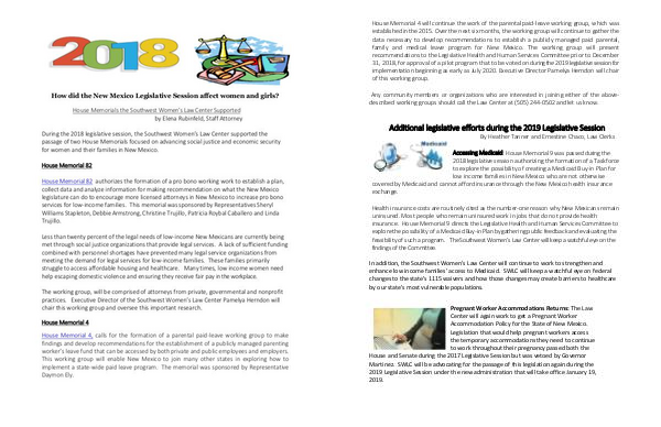 During the 2018 legislative session, the Southwest Women’s Law Center supported the