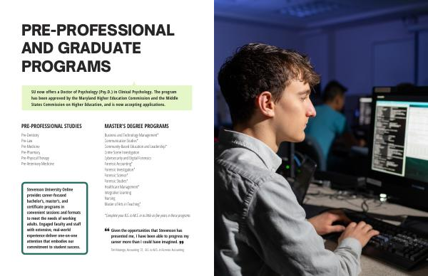 Stevenson University Online provides career-focused bachelor ’ s , master ’ s , and certificate programs in convenient sessions and formats to meet the needs of working adults . Engaged faculty and staff with extensive , real-world experience deliver one-on-one attention that embodies our commitment to student success .