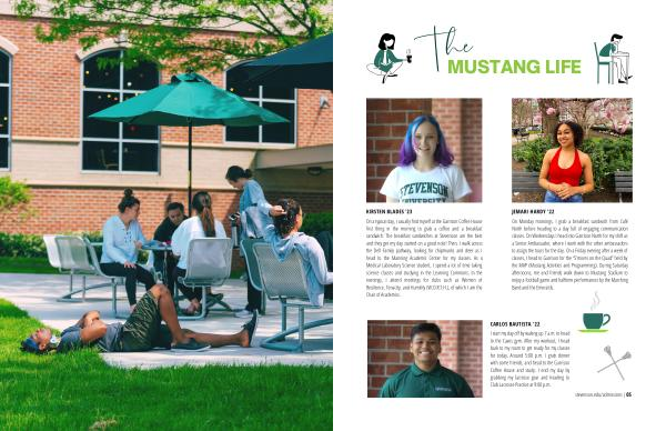 CARLOS BAUTISTA ' 22 I start my day off by waking up 7 a . m . to head to the Caves gym . After my workout , I head back to my room to get ready for my classes for today . Around 5:00 p . m . I grab dinner with some friends , and head to the Garrison Coffee House and study . I end my day by grabbing my lacrosse gear and heading to Club Lacrosse Practice at 9:00 p . m . stevenson . edu / admissions | 05
