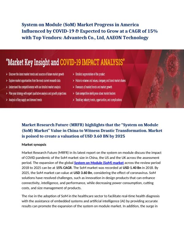 Market Research Future ( MRFR ) in its latest report on the system on module discuss the impact of COVID pandemic of the SoM market size in China , the US and the UK across the assessment period . The expansion of the global