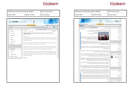 Publication: Emirates News Agency( WAM) Date: 26 June 2013 School: AAM Page No: Online Section: News