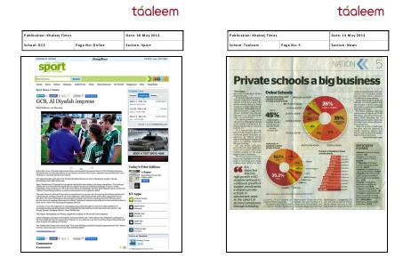 Publication: Khaleej Times Date: 14 May 2013 School: Taaleem Page No: 5 Section: News