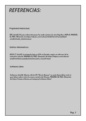 EFE. (2018). El juez ordena bloquear las webs piratas de cine Repelis y HDFull. MADRID. EL PAIS. Obtenido de https://elpais.com/cultura/2018/02/13/actualidad/1518539490_990934.html