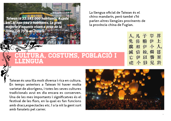 La llengua oficial de Taiwan és el chino mandarín, però també s'hi parlen altres llengües provinents de la província china de Fugian.