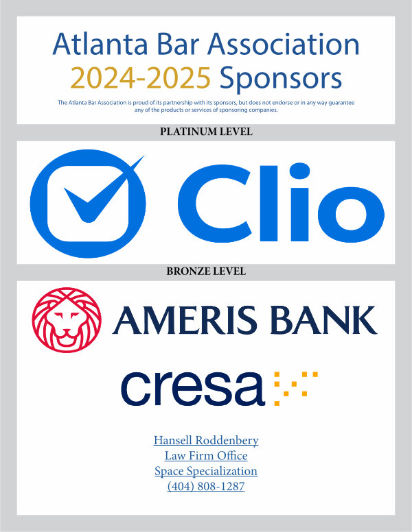 The Atlanta Bar Association is proud of its partnership with its sponsors, but does not endorse or in any way guarantee any of the products or services of sponsoring companies.