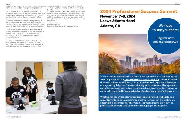 Democracy thrives when citizens are engaged in it . Voting is not just a right ; it ’ s a responsibility and one of the best ways to participate in the democratic process . When you vote , you exercise your fundamental right to choose your leaders and influence government policy . It ’ s an opportunity to be heard and to contribute to the decisions that will affect your life and the lives of future www . atlantabar . org THE ATLANTA LAWYER 13