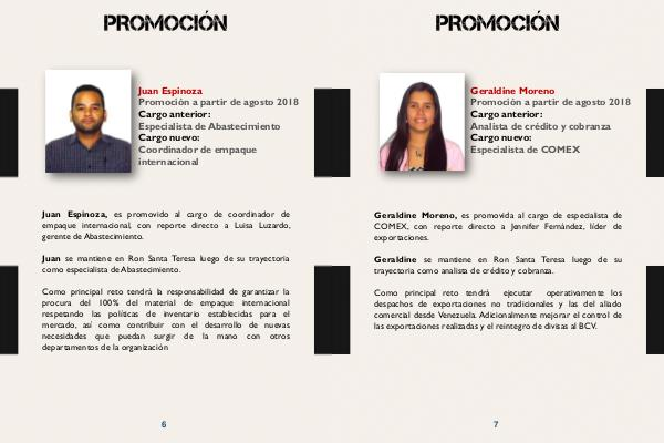 Juan Espinoza Promoción a partir de agosto 2018 Cargo anterior: Especialista de Abastecimiento Cargo nuevo: Coordinador de empaque internacional